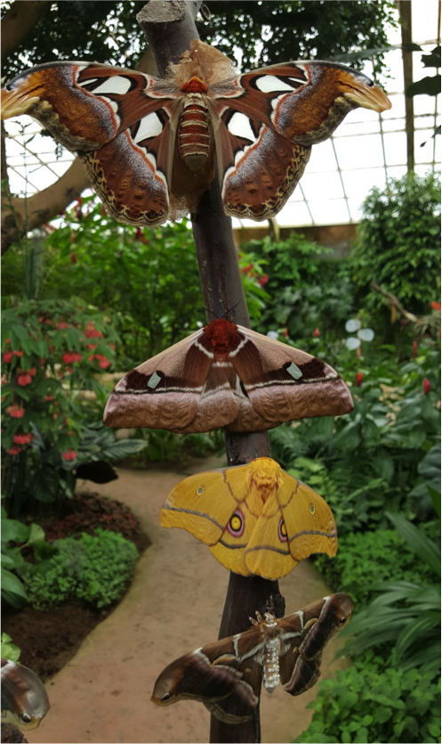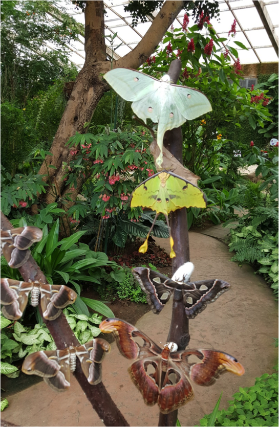 Este año hemos tenido en el Mariposario hasta 10 especies de mariposas de seda de las mas llamativas del mundo, Merece la pena, hacer una mención a estas emblemáticas especies, que lejos de catalogarse como especies con mala fama o considerarse menos atractivas que las especies diurnas, llaman la atención por la espectacularidad de sus diseños.